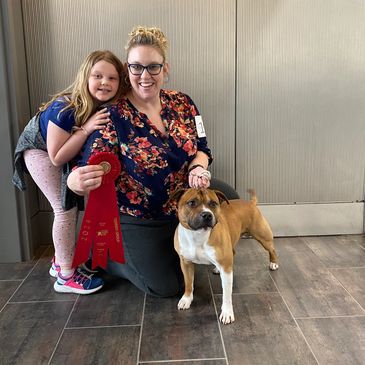 I’m the breeder behind Anchored Staffords, located in Anchorage, AK. Anchored in Tradition is our tag line because the SBT, from the breeds origin, is a wonderful companion that is also athletic, smart, steadfast, and loyal. Health and temperament come first, you shouldn't have an athlete that falls apart or a steadfast dog that is nervous or anxious. My family and I met our first SBT in 2011. After researching the breed we brought home our first male, Titan, in 2015. He produced 2 litters after extensive health testing and has now passed over the rainbow bridge.